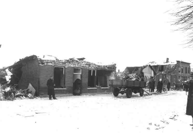 V-1 neergestort aan Laageinde (Foto A. Oudkerk, collectie Gemeentearchief Waalwijk, fotonr. 20584)