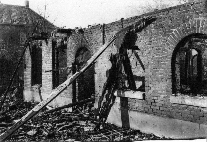 Wat er na de brand overbleef van de luxelederwarenfabriek van de firma De Ruijter-Moonen (Collectie SALHA, fotonr. 70359, foto Fotopersbureau Het Zuiden)