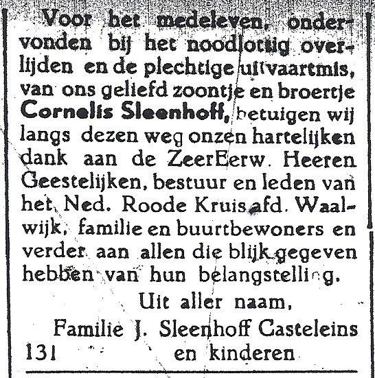 Dankbetuiging Kees Sleenhoff (uit De Echo van het Zuiden)