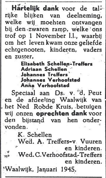 Dankbetuiging families Verhoofstad en Treffers (uit De Echo van het Zuiden)