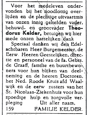 Dankbetuiging familie Kelder uit De Echo van het Zuiden