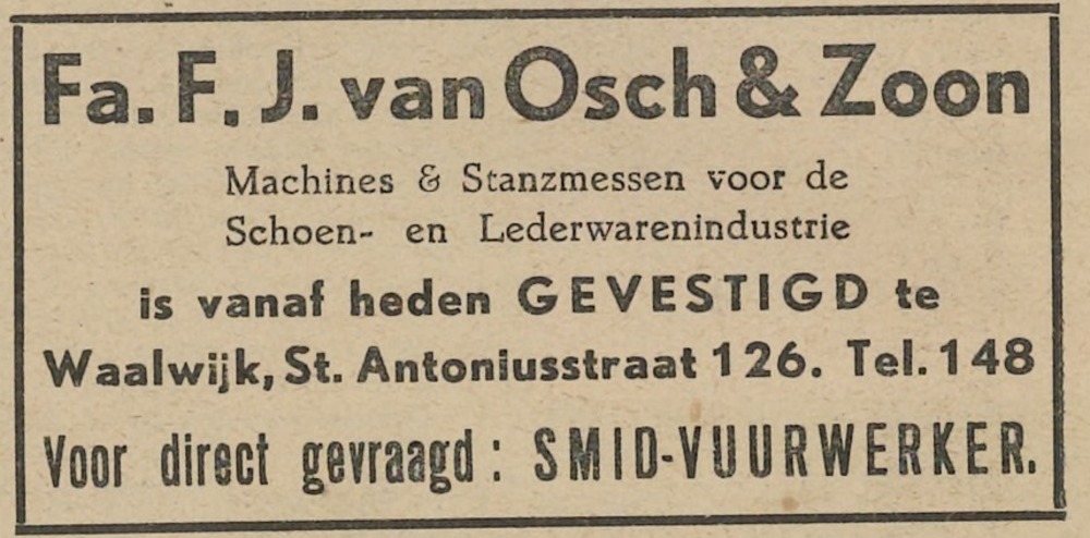 Advertentie van smid Fer van Osch uit De Echo van het Zuiden, 9 februari 1924