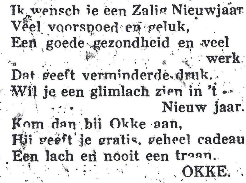 Nieuwjaarsadvertentie Okke de Spin 1934 (uit De Echo van het Zuiden)