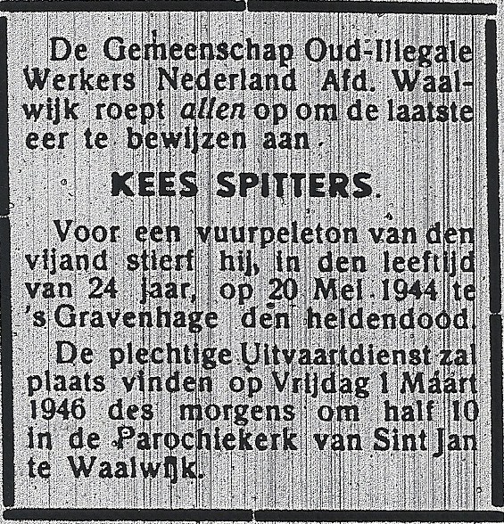 Rouwbericht C Spitters (uit De Echo van het Zuiden)