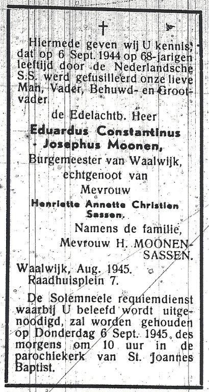 Rouwbericht burgemeester Moonen (uit De Echo van het Zuiden)