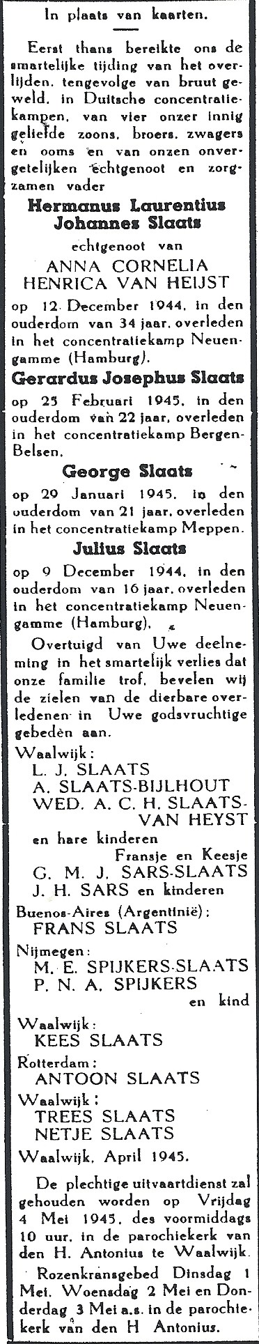 Rouwbericht familie Slaats (uit De Echo van het Zuiden)