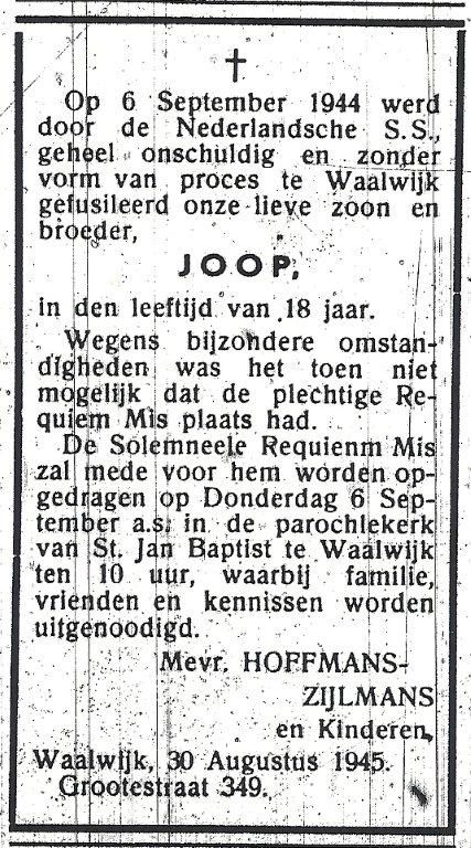 Rouwbericht Joop Hoffmans (Uit de Echo van het Zuiden)