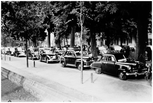 ’Een grote file auto’s’ bij het jaarlijkse uitstapje van de Waalwijkse bejaarden, 1952 (SALHA, fotonr. WAA13652)