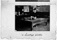 Keesje de Ruijter in ‘een lastige positie’ op de biljarttafel, 1937 (Collectie SALHA, fotonr. 71225).