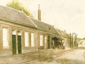 De prent Laageinde is vervaardigd door H.M. (Henk) Stokwielder. In het midden is de hoefstal van smederij Van der Mee te zien.