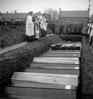 Begrafenis van de 16 katholieke slachtoffers (foto: J. de Bont, Waalwijk/GAW, nr. 82940).