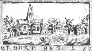 De steen met de tekst ’16 ’t Dorp Besoie 87’ bevond zich in de gevel van een huis aan de Vissersdijk Zuidzijde/hoek Molensteeg Oostzijde te Rotterdam. Dit huis werd in 1902 afgebroken voor de bouw van een kantoor van de Handelsbank. Mogelijk is de steen vervaardigd in opdracht van ene Jan van Besoijen, koopman, die in 1676 aan de Vissersdijk twee percelen grond kocht.
