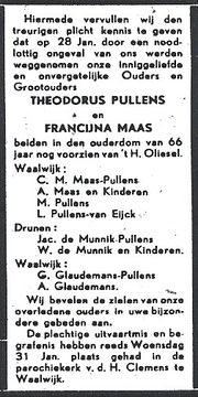 | 3 jun 2024 09:53 | Rouwbericht Pullens Maas.jpg (bestand) | 71 kB | Jan (overleg | bijdragen) | Rouwbericht familie Pullens-Maas uit De Echo van het Zuiden | 1 | |